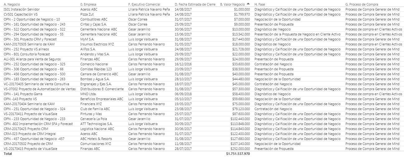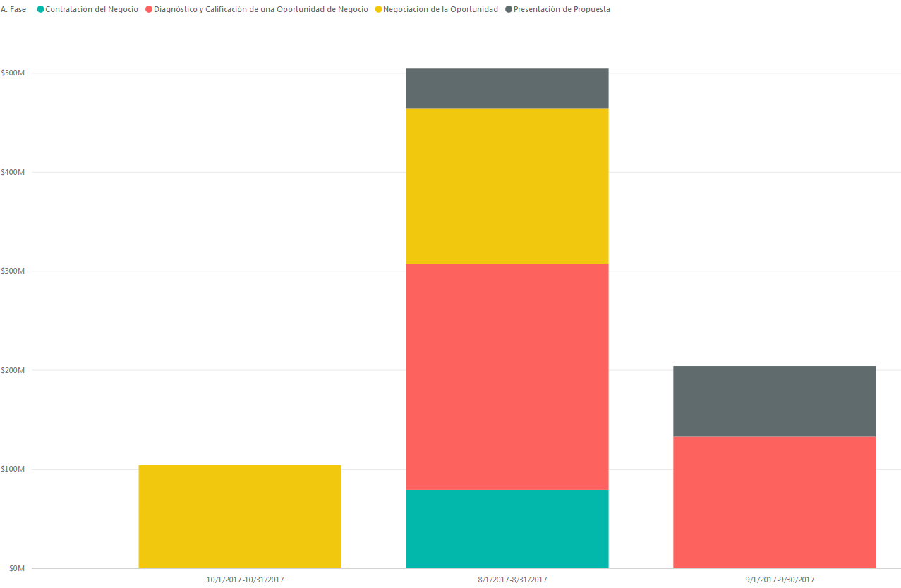 En cada barra se ubican los negocios acuerdo con su fase y fecha estimada de cierre de cada negocio.