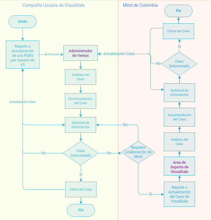 - Mind de Colombia: Mind participa en este proceso una vez que el administrador del sistema considera que requiere la ayuda de Mind de Colombia para resolver el caso o casos reportados por los usuarios.