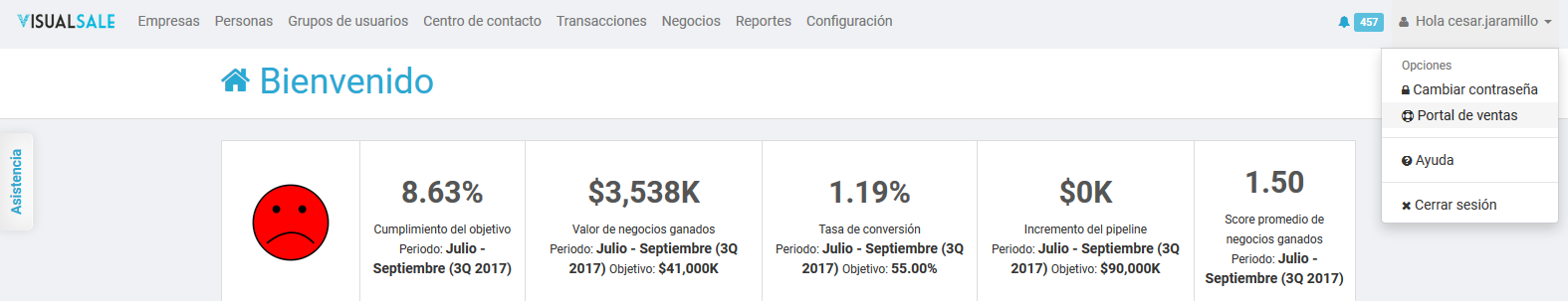 Acá el usuario da clic en la opción derecha superior llamada "Portal de Ventas".