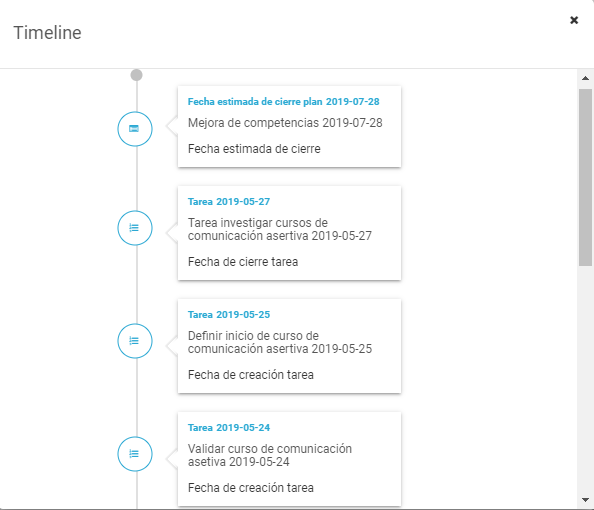 - Fecha programada de finalización: Es una campo digitado y corresponde a la fecha estimada en la cual el usuario estima que todas las actividades que forman parte de este plan, deben estar completadas.