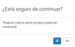 Al finalizar el proceso aparecerá una ventana de confirmación, teniendo en cuenta que el proceso es irreversible.